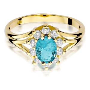 Prezentowany model W-37.T0.90.Z to kwintesencja kobiecości i elegancji, uwieczniona w formie wytwornego pierścionka. Dedykowany dla kobiet, które cenią sobie wyszukany gust i jakość, artykuł oscyluje wokół prestiżu i luksusu. Złoto o próbie 585, znakomita podstawa dla błękitnych diamentów, podkreśla stylowy charakter tej biżuterii. Niebieski kolor kamieni dodaje delikatnej tajemniczości, przyciągając uwagę subtelnością barw. Ta kombinacja nie tylko oświetla zmysł estetyki, ale także podkreśla wartość marki, znanej z kompromisowej jakości i niepowtarzalnych wzorów.