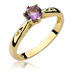 Model W-74.A0.50.Z to kwintesencja elegancji, dedykowana kobietom ceniącym luksus i wyszukany styl. Ten ekskluzywny pierścionek łączy złoto próby 585 z perfekcyjnie osadzonymi kamieniami - diamentem oraz ametystem. Fioletowy kolor ametystu dodaje głębi i tajemniczości, podkreślając unikalną estetykę biżuterii. Kontrastujące szlachetność złota oraz blask diamentów jest pełne harmonii, co sprawia, że biżuteria jest idealną propozycją na wyjątkowe okazje. Delikatna, ale wyniosła estetyka tego pierścionka z pewnością przyciągnie uwagę, oferując noszącej go kobiecie poczucie wyjątkowości i luksusu.