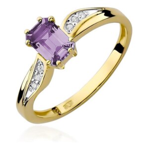 Model W-94.A0.50.Z to kwintesencja elegancji dopracowana w każdym szczególe. Wykorzystanie złota próby 585 gwarantuje wysoką jakość oraz trwałość, natomiast delikatne połączenie ametystu z diamentami dodaje wyjątkowego charakteru. Ametyst o masie od 0.40 do 0.60 ct, znany ze swojego głębokiego fioletowego koloru, w połączeniu z blaskiem diamentów sprawia, że pierścionek z tego modelu jest nie tylko biżuterią, ale prawdziwym dziełem sztuki. Ten pierścionek to doskonały wybór dla kobiet ceniących sobie zarówno luksus, jak i subtelną elegancję.