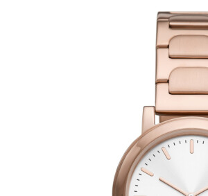 Damski zegarek DKNY model NY6622 emanuje elegancją, prezentując się jako kwintesencja nowoczesnego podejścia do mody. Wyróżniający się swoim okrągłym kształtem i średnicą koperty 34 mm, zegarek jest wykonany ze stali nierdzewnej w modnym odcieniu różowego złota, co dodaje mu subtelnego blasku i luksusu. Jasna tarcza zapewnia łatwość odczytu, a osłaniające ją szkło mineralne zapewnia odpowiednią ochronę. Bransoleta w tym samym kolorze zamykana zapięciem motylkowym nie tylko zwiększa komfort noszenia, ale także podkreśla kobiecą delikatność. Styl 'Fashion' i wykończenie metodą PVD/IP podkreślają modowy charakter tej marki, tworząc idealne połączenie funkcjonalności z nowoczesnym designem.