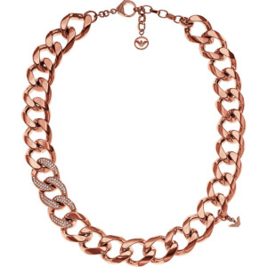 Naszyjnik damski Emporio Armani o numerze modelu EGS1990221190 to wykwintne połączenie mody i luksusu, które odzwierciedla prestiż marki. Wykonany z najwyższej jakości stali szlachetnej oraz pozłacany w kolorze różowego złota, ten akcesorium prezentuje się niezwykle elegancko. Połyskujące zdobienia z cyrkonii dodają naszyjnikowi wyrafinowanego blasku, tworząc doskonały akcent do zarówno codziennych, jak i wieczorowych stylizacji. Subtelny design i klasyczne zastosowanie kruszców jak stal i złoto podkreślają charakterystyczny dla Emporio Armani styl Fashion, idealny dla nowoczesnych kobiet ceniących sobie zarówno styl, jak i jakość.