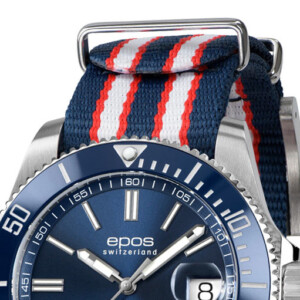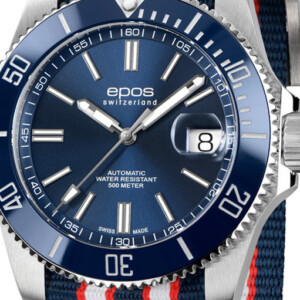 Model Epos o numerze 3504.131.96.16.66 jest wyposażony w zaawansowane technologie, które odpowiadają potrzebom nawet najbardziej wymagających nurków. Stal szlachetna użyta w konstrukcji zapewnia wytrzymałość na korozję wodną, zaś automatyczny mechanizm gwarantuje dokładność działania bez konieczności manualnego nakręcania. Obrotowy bezel pozwala na monitorowanie czasu zanurzenia, a datownik umieszczony na niebieskiej tarczy ułatwia organizację czasu. Dzięki luminowej powłoce na wskazówkach i indeksach, zegarek jest czytelny nawet w głębinach morskich. Zakręcana koronka oraz dekiel wzmocnione są systemem, który chroni mechanizm przed wodą na głębokościach do 500 metrów. Dodatkowym atutem jest NATO-strap, który jest komfortowy, stylowy i łatwy do wymiany, zgodnie z potrzebami użytkownika. Przy zakupie tego modelu u autoryzowanego sprzedawcy marki Epos masz gwarancję oryginalności produktu i opieki posprzedażowej, co jeszcze bardziej potwierdza wartość inwestycji w ten technologicznie zaawansowany zegarek nurkowy.