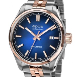 Epos model 3501.132.34.16.44 to kwintesencja elegancji i wyrafinowania, idealny wybór dla mężczyzny ceniącego luksus i jakość. Zegarek posiada ciemną tarczę, która harmonijnie kontrastuje z dwukolorową bransoletą w odcieniach niebieskiego i różowego złota, podkreślającym prestiż marki. Szkło szafirowe, odporne na zarysowania, zapewnia trwałość i nieustającą przezroczystość, podczas gdy pozłacane różowym złotem elementy dodają ekskluzywności. Transparentny dekiel umożliwia podziwianie precyzyjnego mechanizmu automatycznego, co stanowi dodatkowy atut dla miłośników zegarmistrzostwa. Zapięcie motylkowe gwarantuje komfort oraz bezpieczeństwo noszenia, co czyni ten model nie tylko stylowym, ale również funkcjonalnym wyborem.
