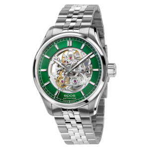 Zegarek męski Epos o numerze modelu 3501.135.20.13.30 uosabia elegancki styl, który jest charakterystyczny dla tej renomowanej marki. Firma Epos znana jest z tworzenia wyrafinowanych czasomierzy, gdzie każdy detal jest precyzyjnie dopracowany. Tarcza w ciemnych tonach idealnie komponuje się z srebrną, stalową bransoletą, a dodatek zielonych akcentów nadaje zegarkowi wyjątkowego charakteru. Szafirowe szkło odpornie na zarysowania oraz transparentny dekiel, przez który można podziwiać mechanizm, podkreślają luksusowy charakter zegarka. Elegancja tego modelu dopełniona jest funkcjonalnością, jak wodoodporność do 100 m oraz fluorescencyjne wskazówki, co czyni go idealnym wyborem dla mężczyzn ceniących zarówno styl, jak i praktyczność.