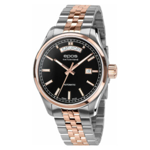 Zegarek męski Epos model 3501.142.34.95.44 to kwintesencja elegancji połączona z nowoczesną technologią. Ekskluzywna ciemna tarcza, otoczona korpuskiem z wysokiej jakości stali szlachetnej, wzbogacona o szczegóły pozłacane w kolorze różowego złota, sprawia, że jest to czasomierz przyciągający wzrok. Fluorescencyjne wskazówki i indeksy gwarantują czytelność godziny, również po zmroku, a przezroczysty dekiel pozwala podziwiać precyzję mechanizmu automatycznego. Styl Epos łączy w sobie elegancję z funkcjonalnością, co czyni go idealnym wyborem dla nowoczesnych mężczyzn ceniących tradycje i jakość.