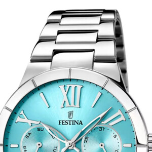 Elegancji i wyrafinowania dodaje zegarek damski Festina model F16716/4, który łączy w sobie estetykę i funkcjonalną doskonałość. Jego okrągła, stalowa koperta o średnicy 36mm, pokryta jest wytrzymałym szkłem mineralnym, zabezpieczającym jasną tarczę z funkcją datownika. Bransoleta w tonacji niebiesko-srebrnej dodaje urządzeniu subtelności i luksusu, idealnie komponując się z każdym strojem. Styl "Eleganckie" zegarka świetnie pasuje do wieczorowych sukienek jak i do codziennych, biznesowych zestawów, podkreślając wysoką pozycję marki Festina na rynku wyrafinowanych dodatków.