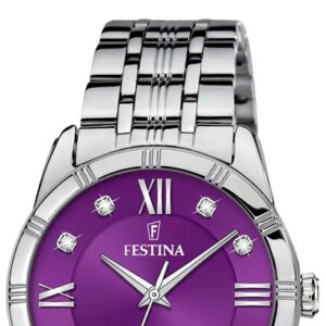 Zegarek damski Festina model F16940/G to kwintesencja elegancji, która idealnie odzwierciedla renomę marki. Okrągła koperta o średnicy 32 mm, wykonana ze stali szlachetnej, zapewnia wysoką trwałość oraz doskonały wygląd, który podkreślają zdobienia w postaci kryształów, dodające szlachetności każdej stylizacji. Ciemna tarcza harmonizuje z fioletowo-srebrnym kolorem bransolety, tworząc spójny i wyrafinowany design. Szkło mineralne oraz wodoodporność do 50 m stanowią praktyczne dopełnienie tego eleganckiego czasomierza, idealnie pasującego do różnorodnych okazji.
