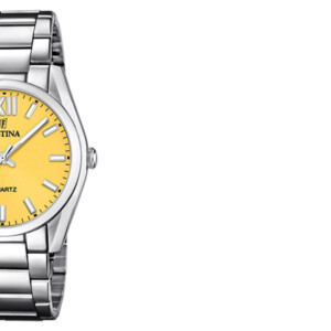 Elegancja i klasa to słowa kluczowe, które idealnie opisują damski zegarek Festina model F20622/G, cechujący się wyrafinowanym, okrągłym kształtem koperty o średnicy 37 mm, wykonanej z wysokiej jakości stali szlachetnej. Jego jasna tarcza skutecznie komponuje się z srebrno-żółtą bransoletą, dodając całości subtelności i kobiecego uroku. Krystalicznie czyste szkło mineralne chroni przed zarysowaniami, zachowując przy tym świetlisty blask przez długie lata. Zegarek, będący wizytówką renomowanej marki Festina, jest nie tylko pięknym dodatkiem, ale także wyrazem prestiżu i wyjątkowego smaku, idealnym dla każdej kobiety ceniącej eleganckie detale w swojej codziennej stylizacji.