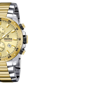 Męski zegarek Festina model F20562/1 łączy w sobie sportową elegancję z wysoką funkcjonalnością, będąc wiernym odzwierciedleniem renomowanej marki Festina, znanej z precyzyjnego rzemiosła i stylowej estetyki. Zegarek oferuje wyrafinowany design z jasną tarczą i srebrno-żółtą bransoletą wykonaną ze stali szlachetnej, która dodaje wyrazistości każdej stylizacji. Okrągła, solidna koperta o średnicy 45mm, w połączeniu z mineralnym szkłem, doskonale chroni mechanizm kwarcowy zasilany baterią. Dzięki wodoodporności do 100m, zegarek jest idealnym wyborem dla aktywnych mężczyzn, którzy cenią sobie zarówno elegancję, jak i sportową wytrzymałość.