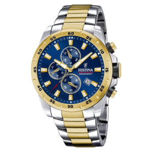 Zegarek męski Festina model F20562/2 to wyjątkowe połączenie sportowej elegancji i nowoczesnego designu. Okrągła stalowa koperta o średnicy 45mm, wykończona w przykuwających uwagę kolorach niebieskim, srebrnym i żółtym, podkreśla dynamiczny charakter tego urządzenia. Festina, jako marka ceniona za precyzję i styl, potwierdza swoją reputację za pomocą ciemnej tarczy chronionej mineralnym szkłem oraz funkcjonalnej bransolety. Dodatkowe walory jak wodoodporność do 100m oraz działanie na zaawansowanym mechanizmie kwarcowym (zasilanym baterią) sprawiają, że zegarek ten stanowi idealny wybór dla mężczyzn ceniących sobie zarówno funkcjonalność, jak i estetyczny wygląd.