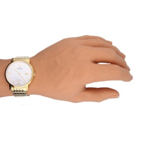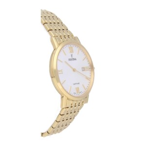 Męski zegarek Festina model F20020/1 to kwintesencja elegancji i wysmakowanego gustu, będący doskonałym przykładem renomy, którą cieszy się marka Festina. Okrągła koperta o średnicy 39mm, wykonana z pozłacanej stali szlachetnej w kolorze srebrnym i żółtego złota, podkreśla prestiżowy charakter tego urządzenia. Szkło szafirowe, odporne na zarysowania, gwarantuje trwałość i czytelność jasnej tarczy ozdobionej datownikiem. Elegancka bransoleta doskonale komponuje się ze stylem zegarka, stanowiąc wyrafinowany dodatek do każdego stroju. Festina F20020/1 to synonim klasy i wyrafinowania, idealny dla mężczyzny ceniącego sobie trwałość i ponadczasowy design.