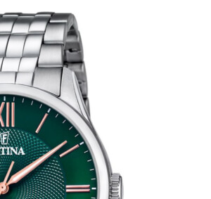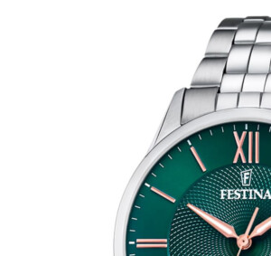 Zegarek męski Festina model F20425/7 to kwintesencja elegancji i wyrafinowanego stylu, który doskonale odzwierciedla wartości marki Festina - prestiż i jakość. Charakteryzuje się okrągłą, solidnie wykonaną kopertą o średnicy 43mm, wykonaną ze stali szlachetnej w srebrnym kolorze, co dodaje mu unikalnego, ponadczasowego charakteru. Zielona tarcza zegarka, osłonięta twardszym szkłem mineralnym, harmonijnie komponuje się z eleganckim designem, podkreślającym jego wysublimowany charakter. Bransoleta ze stali szlachetnej z zapięciem motylkowym nie tylko świetnie wygląda, ale również gwarantuje komfort i bezpieczeństwo użytkowania. Festina F20425/7 to idealny wybór dla mężczyzn ceniących luksus i klasę.