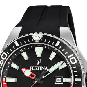 Festina Model F20664/3 wyposażony jest w niezawodny, kwarcowy mechanizm zasilany baterią, zapewniający precyzyjne odmierzanie czasu. Solidna, okrągła koperta o średnicy 46 mm z zakręcanym deklem oraz wodoodporność na poziomie 200m czynią ten zegarek idealnym wyborem dla pasjonatów nurkowania oraz różnorodnych sportów wodnych. Ponadto, zegarek posiada praktyczne funkcje takie jak datownik i fluorescencyjne wskazówki, które są widoczne nawet w trudnych warunkach świetlnych. Wysoką jakość potwierdza również dwuletnia gwarancja. Ciemna tarcza, eleganckie akcenty w kolorze czarnym i srebrnym, a także wygodny, trwały pasek gumowy podkreślają uniwersalny, sportowo-elegancki charakter tego modelu. Zakup tego zegarka u autoryzowanego sprzedawcy marki Festina gwarantuje oryginalność oraz najwyższą jakość produktu.
