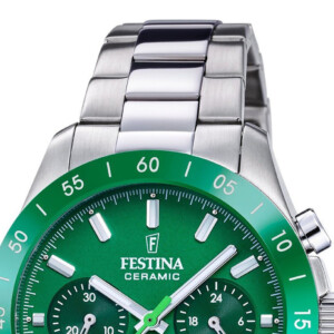 Zegarek Festina o modelu F20693/5 łączy w sobie klasyczną elegancję z nowoczesną funkcjonalnością, co czyni go idealnym wyborem dla osób ceniących sobie zarówno styl, jak i jakość. Jego okrągła, stalowa koperta o średnicy 39 mm i grubości 12 mm, współgra z lśniącą, srebrną bransoletą, tworząc spójny i uniwersalny design. Zielony kolor tarczy dodaje natomiast zegarkowi oryginalności i świeżości, stanowiąc przyciągający wzrok element. Uzupełniony o szkło mineralne, które gwarantuje odporność na zarysowania, oraz doskonałej jakości mechanizm kwarcowy Miyota z funkcjami chronografu i timera 24-godzinnego, ten zegarek jest reprezentatywny dla kunsztu Festiny – marki znaną ze swojej niezawodności i precyzji.