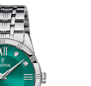 Zegarek damski Festina model F16940/F łączy w sobie elegancję i nowoczesne podejście do designu, co jest charakterystyczne dla marki słynącej z kompromisowej jakości. Wykonany ze stali szlachetnej, co gwarantuje wytrzymałość i odporność na korozję, model ten wyróżnia się srebrnym, stalowym wykończeniem zarówno koperty, jak i bransolety. Koperta o średnicy 32mm i grubości zaledwie 8mm idealnie komponuje się z delikatnymi nadgarstkami, nie obciążając ich. Zielona tarcza z różnorodnymi indeksami dodaje wyrafinowania, a dodatek brylantów na tarczy podkreśla luksusowy charakter zegarka. Festina zastosowała mechaniczny kwarcowy mechanizm zasilany baterią, który zapewnia niezawodność i precyzję. Model ten jest również wodoodporny do 50m, co pozwala na swobodne korzystanie z zegarka podczas powierzchniowego pływania. Szkło mineralne chroni przed zarysowaniami, a funkcjonalne zapięcie motylkowe ułatwia szybkie zakładanie i zdejmowanie zegarka. Festina F16940/F to kwintesencja stylu modowego i doskonały wybór dla kobiet ceniących sobie elegancję połączoną z funkcjonalnością.