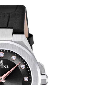 Zegarek damski Festina model F20701/5 to kwintesencja elegancji i nowoczesności w modzie. Jego czarna skórzana bransoleta harmonijnie łączy się ze stalową, srebrną kopertą, dając wyrafinowany i ponadczasowy wygląd. Okrągła, czarna tarcza, ozdobiona kamieniami jako indeksy, dodaje blasku i czyni zegarek nie tylko funkcjonalnym, ale również wyjątkowym dodatkiem do każdej stylizacji. Niewielka średnica koperty (33mm) i jej subtelna grubość (8mm) czynią go idealnym dla delikatnego damskiego nadgarstka, a dodatek diamentów/brylantów na tarczy akcentuje luksusowy charakter produktu. Zegarek Festina tego modelu idealnie sprawdza się jako reprezentacja kobiecej klasy i stylu "Fashion", będąc odpowiednim wyborem dla kobiet ceniących sobie elegancję i jakość.