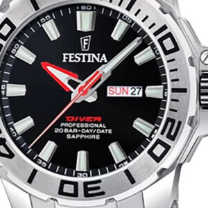 Męski zegarek Festina model F20665/4 to kwintesencja stylu nurkowego, łącząca w sobie zaawansowaną funkcjonalność z eleganckim designem. Wykonany ze stali szlachetnej, zarówno koperta o średnicy 46 mm jak i srebrna bransoleta zatwierdzają trwałość oraz wyrafinowany wygląd. Czarna tarcza z liniowymi indeksami, wyposażona w funkcje takie jak datownik, dzień tygodnia, a także luminowa na wskazówkach i indeksach, zapewniają doskonałą czytelność w każdych warunkach. Obrotowy bezel, zakręcany dekiel oraz wodoodporność do 200m sprawiają, że ten model jest idealny do każdego rodzaju nurkowania. Szkło szafirowe, odporne na zarysowania, chroni zegarek przed uszkodzeniami, gwarantując niezmienną elegancję przez lata.