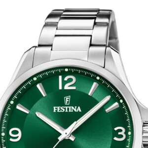 Zegarek męski Festina model F20656/3 to kwintesencja połączenia sportowej dynamiki z elegancją. Wykonany ze stali szlachetnej, z okrągłą kopertą o średnicy 42mm i ciemną tarczą, zachwyca swoim subtelnym designem. Charakterystyczna dla tego modelu bransoleta w kolorze srebrnym elegancko komponuje się z zielonymi akcentami na tarczy, podkreślając unikalny styl zegarka. Szkło mineralne oraz wodoodporność do 50m zapewniają trwałość i odporność podczas codziennych aktywności. Dzięki zastosowaniu fluorescencyjnych wskazówek oraz panelu słonecznego, Festina F20656/3 jest nie tylko praktyczny, ale i idealny dla mężczyzn ceniących zarówno funkcjonalność, jak i estetykę.
