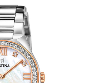 Festina, znana z niezawodnej jakości i eleganckiego stylu, prezentuje model damski F20658/1, który połączył precyzję wykonania z zamiłowaniem do subtelnej estetyki. Charakteryzujący się okrągłą kopertą o średnicy 35 mm, ten zegarek wykonany z wysokiej jakości stali szlachetnej, wykończony jest lśniącą, białosrebrną bransoletą. Minimalistyczne, jasne tarcze zdobią cyrkonie i masa perłowa, dodając zegarkowi wytworności i blasku przy każdym ruchu nadgarstka. Mineralne szkło zapewnia ochronę, zaś wodoodporność do 50 metrów umożliwia swobodne pływanie powierzchniowe. Zapięcie motylkowe i panel słoneczny to funkcjonalne detale, które podkreślają nowoczesność i praktyczność zegarka, czyniąc go idealnym towarzyszem każdej współczesnej kobiety ceniącej klasykę połączoną z nowoczesnością.