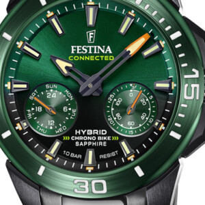 Festina, renomowana marka zegarków, z dumą prezentuje męski model F20646/1, który doskonale łączy sportowy wigor z elegancją. Okrągła koperta o średnicy 47 mm, wykonana z nierdzewnej stali, nadaje mu wyjątkową wytrzymałość i ponadczasowy wygląd. Ciemna tarcza z zielonymi akcentami, osłonięta mineralnym szkłem, zapewnia optymalną czytelność, a fluorescencyjne wskazówki i indeksy umożliwiają odczytanie czasu nawet w słabym świetle. Bransoleta z czarnej stali szlachetnej dodaje całości stonowanego charakteru, a detal, jakim jest zielony pasek, odświeża tradycyjną stylistykę w nowoczesny sposób. Festina F20646/1 stanowi wyraz sportowej elegancji, stworzonej z myślą o mężczyznach ceniących solidność i styl.