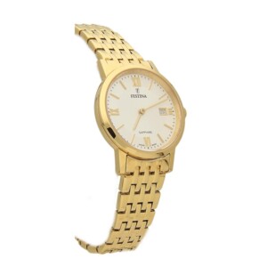 Model F20021/1 marki Festina idealnie odzwierciedla elegancję i nowoczesność, które są synonimami tej znanej marki. Zegarek oblewa się w srebrno-złotą kolorystykę, która dodaje luksusu dzięki zastosowaniu technologii PVD/IP pozwalającej na osiągnięcie bogatego i trwałego wykończenia żółtego złota. Jego okrągła koperta wykonana ze stali szlachetnej ma 29mm średnicy, idealnie komponując się z bransoletą, co podkreśla klasyczne piękno z nutą współczesnych trendów. Jasna tarcza razem z datownikiem są czytelne i praktyczne, a szafirowe szkło odporne na zarysowania dodatkowo podnosi wartość użytkową i estetyczną tego modelu, czyniąc go doskonałym wyborem dla kobiety ceniącej styl i jakość.