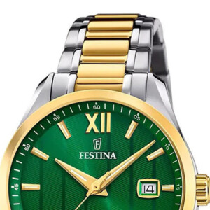 Zegarek męski model F20027/3 łączy w sobie klasę i nowoczesność, odzwierciedlając doskonałe rzemiosło marki. Jego stalowa, okrągła koperta oraz bransoleta – obie w dwukolorowym wykończeniu, dzięki zaawansowanemu nanoszeniu koloru metodą PVD/IP, zapewniają zarówno trwałość, jak i wyrafinowany wygląd. Zielona tarcza z liniowymi indeksami, datownikiem i powłoką Luminova na wskazówkach zapewnia doskonałą czytelność i świecące detale, które podkreślają elegancję designu. Szkło szafirowe, charakteryzujące się wyjątkową odpornością na zarysowania, chroni tarczę zegarka, dodając mu funkcjonalności. Model ten, będący kwintesencją elegancji, idealnie komponuje się z formalnym ubiorem, podkreślając prestiż i świetny gust jego właściciela.