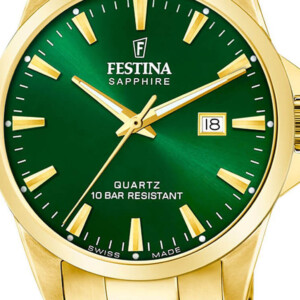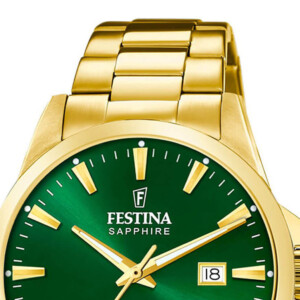Elegancja i nowoczesność to przymioty, które idealnie charakteryzują męski zegarek Festina model F20044/5. Dzięki wykonaniu z wysokiej jakości stali szlachetnej z żółtym wykończeniem na kopercie i bransolecie, zegarek przyciąga wzrok swoim unikalnym, ale zarazem szlachetnym wyglądem. Zielona tarcza doskonale kontrastuje z liniowymi indeksami, a dodatkowe zabezpieczenie w postaci szkła szafirowego zapewnia odporność na zarysowania. Specjalna technika nanoszenia koloru PVD/IP nadaje zegarkowi wyjątkową trwałość i połysk, co podnosi jego wizualną i użytkową wartość. Zegarek Festina to wybór dla mężczyzny, który ceni sobie równie wysoką funkcjonalność, jak i wyrafinowany wygląd.