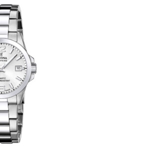 Zegarek damski Festina, model F20049/1, to prawdziwy klejnot w kolekcji każdej eleganckiej kobiety, ceniącej klasykę połączoną z nowoczesnością. Zachwyca swoją prostotą i wysmakowanym designem, gdzie dominuje okrągła, srebrzysta koperta o średnicy 29 mm, wykonana z wysokiej jakości stali szlachetnej, co zapewnia trwałość i odporność na uszkodzenia. Srebrna, liniowa tarcza z subtelnym datownikiem i luminowymi akcentami na wskazówkach i indeksach jest czytelna i funkcjonalna. Elegancko prezentuje się bransoleta również wykonana ze stali szlachetnej, wykończona zapięciem motylkowym, które gwarantuje komfort i bezpieczeństwo użytkowania. Całość uzupełnia szafirowe szkło, zabezpieczające przed zarysowaniami. Wodoodporność do 100 metrów pozwala na zachowanie aktywności w różnych warunkach, a dwuletnia gwarancja potwierdza solidność wykonania zegarka.