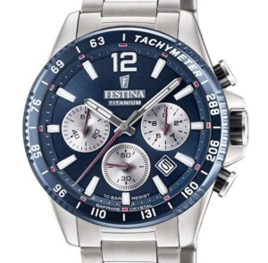 Zegarek męski Festina model F20520/2 to kwintesencja sportowej elegancji połączonej z nowoczesnym designem i zaawansowaną technologią. Wykonany z tytanu, który zapewnia lekkość i wytrzymałość, ten zegarek cechuje się niebiesko-srebrną tarczą osadzoną w okrągłej kopercie o średnicy 45mm. Jasne, fluorescencyjne wskazówki oraz indeksy ułatwiają odczyt czasu w każdych warunkach. Chronograf i datownik dodają funkcjonalności, a tarcza z tachymetrem podkreśla sportowy charakter zegarka. Szafirowe szkło odpornie na zarysowania oraz wodoodporność do 100 metrów sprawiają, że model ten jest idealny dla aktywnych mężczyzn ceniących sobie styl i trwałość.