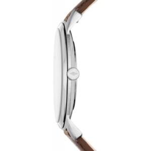 Przejrzysta tarcza w tym modelu to kolejny atut. Wyposażono ją w indeksy liniowe oraz wskazówki, za które odpowiada kwarcowy mechanizm napędzany baterią. Cały układ na analogowym cyferblacie podkreśla logo marki Fossil, umieszczone poniżej godziny dwunastej.