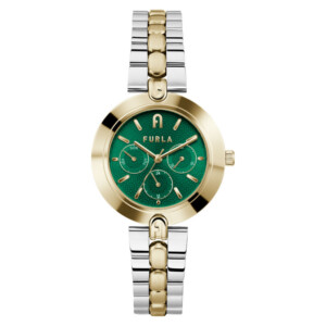 Damski zegarek marki Furla, model WW00030008L4, łączy w sobie elegancję i nowoczesność, oddając ducha włoskiego designu. Jego okrągła koperta z wysokiej jakości pozłacanej stali szlachetnej zachwyca połączeniem kolorów srebra, zielonego i żółtego złota, które świetnie komponują się z jasną tarczą. Bransoleta wykonana z tego samego materiału podkreśla luksusowy charakter, a mineralne szkło zapewnia trwałość i wysoką odporność na zarysowania. Styl Fashion, jaki reprezentuje ten model, sprawia, że zegarek jest perfekcyjnym akcentem do każdej stylizacji, dodając klasy i wyrafinowanego smaku.