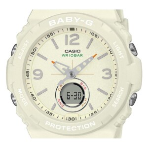 G-shock Baby-G BGA-260-7A - zegarek damski w oryginalnym białym kolorze. Czasomierz jest praktyczny i wpisuje się w aktualne trendy. Koperta wykonana została z wysokogatunkowego tworzywa sztucznego. Tarcza analogowa, cyfrowa pokryta została mineralnym szkiełkiem. Pasek wykonany został z plastycznej gumy, dobrze się trzyma na ręce. Zamontowany w środku koperty kwarcowy mechanizm zapewnia precyzyjne działanie. Czasomierz wzbogacony został o alarm. Funkcja stref czasowych pokazuje jednocześnie czas w różnych strefach. System Wstrząsoodporny to specjalny system chroniący zegarek w przypadku upadku z wysokości.G-shock Baby-G BGA-260-7A - zegarek damski sprawdzi się do stylizacji sportowych, casulowych. Ze względu na wysoką jakość wykonania posłuży na wiele lat użytkowania. Nadaje się zarówno dla nastolatek jak o dorosłych kobiet. Producent udziela 3-letnią gwarancję, po tym czasie można wykupić dodatkową 3 -letnią gwarancję.W zestawie: fabrycznie nowy zegarek, instrukcja obsługi w języku polskim, podbita gwarancja, firmowe opakowanie.