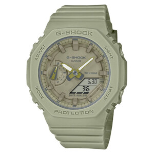 Zegarek damski G-shock GMA-S2100BA-3A to kwintesencja wytrzymałości połączona z nowoczesnym stylem. Marka G-shock zawsze stanowiła synonim odporności i funkcjonalności, co doskonale odzwierciedla ten model. Wyróżnia się jasną, czytelną tarczą umieszczoną w okrągłej, trwałej kopercie o średnicy 43 mm, wykonanej z wysokiej jakości tworzywa sztucznego. Zielony, gumowy pasek nie tylko doskonale komponuje się z designem, ale także zapewnia komfort noszenia podczas wszelkich aktywności. Stylowe połączenie elementów fashion i sportowych czyni ten zegarek idealnym wyborem dla aktywnych kobiet, które cenią sobie zarówno funkcjonalność, jak i modne akcenty.