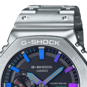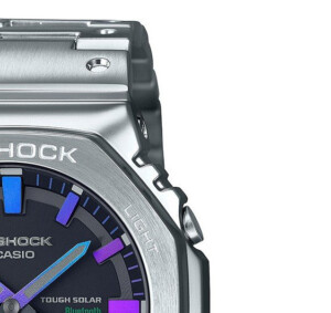 Zegarek G-shock GM-B2100PC-1A, to kwintesencja sportowego stylu z kultowym designem, który pozwala wyróżnić się z tłumu. Jego okrągła, stalowa koperta o średnicy 44 mm, z zakręcanym deklem, zapewnia wytrzymałość oraz bezpieczeństwo mechanizmu kwarcowego zasilanego baterią. Ciemna tarcza z fluoresecencyjnymi wskazówkami i indeksami doskonale kontrastuje z wielokolorową, srebrną bransoletą, tworząc unikalny akcent wizualny. Dodatkowo, szkło mineralne chroni zegarek przed zarysowaniami, co w połączeniu z wodoodpornością do 200m sprawia, że jest idealny dla miłośników aktywności zarówno na lądzie, jak i pod wodą.