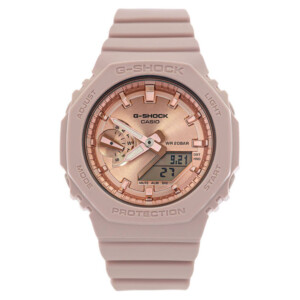 Zegarek damski G-shock model GMA-S2100MD-4A to kwintesencja stylu Fashion, zamknięta w funkcjonalnej i wytrzymałej formie. Z okrągłą kopertą o średnicy 43mm, wykonaną z tworzywa sztucznego, oraz jasną tarczą pod szkłem mineralnym, prezentuje się elegancko i nowocześnie. Beżowy pasek z gumy/kauczuku dodaje charakteru i zapewnia komfort noszenia, a szeroka gama funkcji - od chronografu i alarmu po wstrząsoodporność i wodoodporność do 200m - czyni go niezawodnym towarzyszem w codziennym życiu oraz podczas aktywności sportowych. Warto dodać, że marka G-shock słynie z produkcji zegarków o wysokiej odporności i jakości, co potwierdza dodatkowa, przedłużona gwarancja trwająca aż 6 lat.