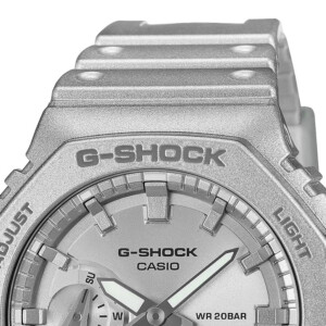 Zegarek męski G-shock GA-2100FF-8A jest doskonałym przykładem zaawansowanego połączenia funkcjonalności i sportowego stylu, które są znakiem rozpoznawczym marki G-shock. Wyróżnia się srebrnym, okrągłym tworzywem sztucznym i odpornością na wstrząsy oraz wodę do 200 metrów, co sprawia, że jest idealny do nurkowania z aqualungiem. Fluorescencyjne wskazówki oraz podświetlana tarcza gwarantują czytelność w każdych warunkach, a guma kauczukowa dodaje wygody oraz trwałości. To kombinacja, która podkreśla sportowy charakter i solidność, jakiej oczekuje się od G-shock.