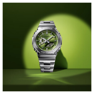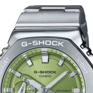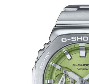 Model GM-2110D-3A od G-Shock łączy w sobie wytrzymałość i nowoczesny sportowy design, który wyróżnia się na tle innych zegarków. Jego zielona tarcza doskonale kontrastuje z srebrną, stalową kopertą i bransoletą, nadając zegarkowi elegancki, ale zarazem dynamiczny wygląd. Dodatkowe atuty modelu to cienka koperta o grubości 11 mm i średnicy 44 mm, które zapewniają wygodę noszenia mimo solidnej konstrukcji. To, w połączeniu z charakterystyczną dla G-Shock odpornością na wstrząsy i wodoodpornością do 200 metrów, czyni model GM-2110D-3A idealnym wyborem dla aktywnych, ceniących sobie zarówno funkcjonalność, jak i styl.