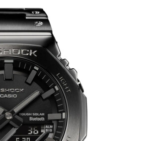 G-shock GM-B2100BD-1A to zegarek męski, który idealnie współgra z dynamicznym stylem życia, łącząc sportową funkcjonalność z modnym designem. Jego czarna, okrągła koperta o średnicy 44mm, wykonana ze stali szlachetnej pokrytej metodą PVD/IP, nadaje mu elegancki, ale zarazem wytrzymały charakter. Ciemna, podświetlana tarcza z fluorescencyjnymi wskazówkami i indeksami zapewnia doskonałą czytelność w każdych warunkach. Wodoodporność na poziomie 200 metrów czyni go idealnym dla nurkowania z akwalungiem. Zapięcie motylkowe gwarantuje bezpieczeństwo i komfort noszenia, a bransoleta dodatkowo podkreśla jego sportowy charakter.