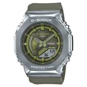 Na wygląd zegarka G-shock Originals GM-S2100-3A - zegarek damski składają się:- Kształt koperty Okrągła - Najbardziej popularny kształt koperty występujący w przypadku naręcznych czasomierzy.