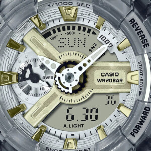 Zegarek damski G-shock model GMA-S110GS-8A to prawdziwy triumf współczesnego designu, łączący sportową funkcjonalność z modnym wyglądem. Jego okrągła koperta o średnicy 46mm wykonana z wytrzymałego tworzywa sztucznego, razem z elastycznym paskiem gumowym, gwarantuje komfort noszenia podczas różnych aktywności. Jasna tarcza zegarka, chroniona szkłem mineralnym, zapewnia doskonałą czytelność, dodatkowo podkreślając stylowe detale w kolorach białym, szarym i przezroczystym. Model ten, zdolny do wytrzymywania wody na głębokości do 200 metrów i odporny na wstrząsy, idealnie współgra z dynamicznym trybem życia nowoczesnej kobiety, podkreślając jej zdecydowanie i styl.