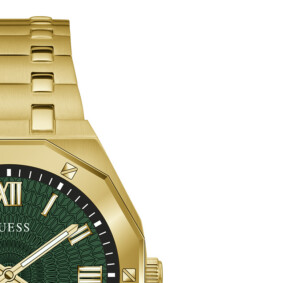 Zegarek męski Guess model GW0575G2 to prawdziwe mistrzostwo w kategorii stylu Fashion. Elegancka, okrągła koperta o średnicy 42 mm wykonana jest ze stali szlachetnej, co zapewnia trwałość i wysoką jakość produktu. Tarcza o złoto-zielonej kolorystyce, pokryta szkłem mineralnym, dodaje urządzeniu ekskluzywnego charakteru. Fluorescencyjne wskazówki i indeksy znakomicie komponują się z pozłacaniem w kolorze żółtego złota, także nanoszonym metodą PVD/IP, co podkreśla prestiż marki Guess. Zapięcie motylkowe nie tylko ułatwia zakładanie zegarka, ale i dodaje mu elegancji, zapewniając jednocześnie bezpieczeństwo na nadgarstku. To więcej niż tylko czasomierz – to symbol mody i luksusu.