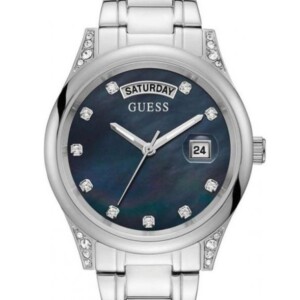 Zegarek damski Guess model GW0047L1 to kwintesencja elegancji, oferująca wyrafinowany styl, który idealnie podkreśli osobowość każdej kobiety preferującej modę. Stal szlachetna użyta do wykonania koperty i bransolety, połączona z subtelnymi zdobieniami z kryształów i masy perłowej, zapewnia trwałość oraz luksusowe wykończenie. Granatowa tarcza o średnicy 36mm, osłonięta trwałym szkłem mineralnym, stanowi idealne tło dla srebrnych indeksów i datownika, dodając zegarkowi wytworności. Ten model, będący wizytówką marki Guess, łączy w sobie style Fashion i luksus, będąc doskonałym wyborem dla każdej nowoczesnej kobiety.