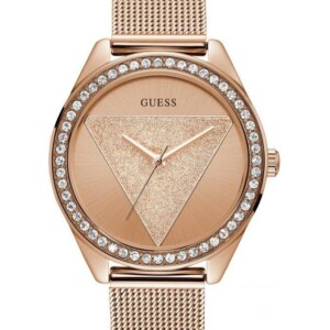Elegancki i stylowy zegarek damski Guess model W1142L4 to idealny wybór dla każdej kobiety ceniącej modny wygląd i jakość. Ten zegarek jest pokryty różowym złotem, co dodaje mu prestiżu i szyku. Jego stal szlachetna, intensywnie połyskująca w kolorze różowego złota, jak również bransoleta, podkreślają ekskluzywny charakter. Ciemna tarcza doskonale kontrastuje z lśniącą kopertą, co sprawia, że jest nie tylko funkcjonalny, ale i wyjątkowo atrakcyjny. Mineralne szkło zapewnia trwałość i odporność na zarysowania, a zakres wodoodporności do 30m ochroni zegarek przed przypadkowym zachlapaniem. Guess, jako marka, zawsze gwarantuje produkty łączące w sobie niepowtarzalny styl i wyrafinowaną elegancję, stając się odzwierciedleniem współczesnej mody.