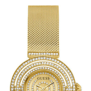 Zegarek damski Guess model GW0550L2 jest kwintesencją stylu Fashion, który idealnie rezonuje z nowoczesną kobiecością i elegancją marki Guess. Okrągła koperta o średnicy 36 mm, wykonana ze stali szlachetnej i pozłacana w technologii PVD/IP na kolor żółtego złota, nadaje zegarkowi wyrafinowany blask. Jasna tarcza ozdobiona cyrkoniami podkreśla luksusowy charakter, podczas gdy bransoleta w tym samym odcieniu złota zapewnia spójność i styl. Szkło mineralne chroni zegarek, dodając mu trwałości oraz elegancji, co sprawia, że jest on nie tylko pięknym dodatkiem, ale także funkcjonalnym elementem modowej garderoby.