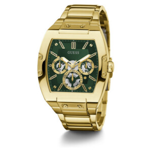 Zegarek męski Guess model GW0456G3 pozwala każdemu mężczyźnie na wyrażenie własnego stylu dzięki odważnemu połączeniu zielonego i żółtego koloru oraz stylowi Fashion, który jest synonimem nowoczesności i elegancji. Okrągła, 43mm koperta wykonana ze stali szlachetnej, połączona z bransoletą, zapewnia trwałość i komfort noszenia. Ciemna tarcza cechuje się czytelnością i dodaje zegarkowi wyrafinowanego charakteru. Mineralne szkło gwarantuje odporność na zarysowania, a klasa wodoodporności 50m pozwala na bezstresowe korzystanie z zegarka podczas codziennych aktywności. Model ten idealnie komplementuje garderobę współczesnego mężczyzny ceniącego markę Guess za jej wyjątkową jakość i design.