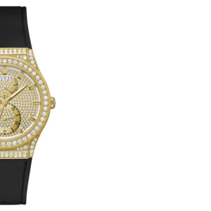 Elegancki zegarek damski Guess model GW0439L2 jest wizualnym odzwierciedleniem prestiżu marki Guess, która od lat jest symbolem luksusu i mody. W tym modelu zachwyca kombinacja czerni i złota, którą wzbogacają zdobienia z cyrkonii i pozłacane detale w technologii PVD/IP. Okrągła koperta o średnicy 39mm wykonana ze stali szlachetnej, pokryta szkłem mineralnym gwarantuje trwałość i elegancję. Gumowy pasek zapewnia komfort noszenia, a jasna tarcza z fluoerescentnymi wskazówkami oraz datownikiem łączy funkcjonalność z nowoczesnym designem. Styl "Fashion" tego zegarka to wyraźny element charakterystyczny dla dynamicznych, świadomych własnego stylu kobiet.