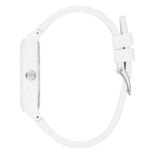 Zegarek damski Guess model W0979L29 emanuje stylem Fashion, który odzwierciedla modny i odważny charakter marki Guess. Wyposażony w okrągłą kopertę o średnicy 42mm, wykonaną z trwałego tworzywa sztucznego, ten zegarek przyciąga uwagę swoim kontrastowym połączeniem białych i czarnych barw. Szczególnie designerski akcent stanowi ciemna tarcza, która w połączeniu z odpornym na zarysowania szkłem mineralnym podkreśla wysoką jakość i dbałość o detale, charakterystyczną dla marki. Komfort noszenia zapewnia elastyczny, gumowy pasek, który idealnie komponuje się z casualowymi jak i bardziej eleganckimi strojami.