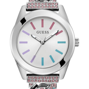 Zegarek damski Guess, model GW0546L4, wpisuje się w modny, fashionowy styl, cieszący się uznanie za stylowy wygląd i klasę. Zdobiony przez efektowne cyrkonie na okrągłej kopercie z jasną tarczą, komplemetuje każdy damski strój dodając szyku każdorazowo. Wykonany ze stali szlachetnej z srebrnym wykończeniem i mineralnym szkłem, zapewnia trwałość oraz odporność na zarysowania. Bransoleta dodaje elegancji, a fluorescencyjne wskazówki ułatwiają odczyt czasu nawet po zmroku. Ten Guess symbolizuje luksus dostępny na co dzień, idealny dla kobiet ceniących sobie modny design i solidne wykonanie.