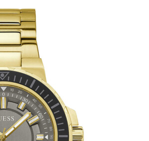 Męski zegarek Guess model GW0426G2 to kwintesencja stylu Fashion, który podkreśli stylizacje mężczyzn ceniących sobie elegancję z nowoczesnym twistem. Zegarek charakteryzuje się okrągłą kopertą o średnicy 44mm, wykonaną z trwałej stali szlachetnej, którą urozmaica kombinacja kolorów czarnego z akcentami żółtego złota, nadając całości wyrafinowany, ale i nowoczesny wygląd. Ciemna tarcza z minerałami szlachetnymi w połączeniu z elegancką bransoletą tworzy spójny i atrakcyjny wizerunek, który jest zgodny ze światowymi trendami w modzie. Wartość marki Guess jest dodatkowo podkreślana przez wysoką jakość wykonania i dbałość o detale, co czyni ten model doskonałym wyborem dla mężczyzn poszukujących wzornictwa, które łączy w sobie klasykę z odrobiną luksusu.