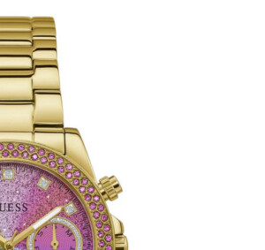Zegarek damski Guess model GW0483L4 to kwintesencja stylu Fashion, którym marka Guess od lat cieszy swoje klientki. Charakteryzujący się okrągłą kopertą z wysokiej jakości stali szlachetnej o średnicy 38mm i zdobieniu w postaci błyszczących cyrkonii, ten model przyciąga wzrok eleganckim połączeniem wielobarwności z pozłacanymi elementami w odcieniach żółtego złota. Ciemna tarcza harmonijnie komponuje się z mineralnym szkłem, dodając wytrzymałości oraz luksusowego wyglądu. Bransoleta z zapięciem motylkowym gwarantuje wygodne noszenie, a fluorescencyjne wskazówki i datownik zapewniają funkcjonalność na co dzień.